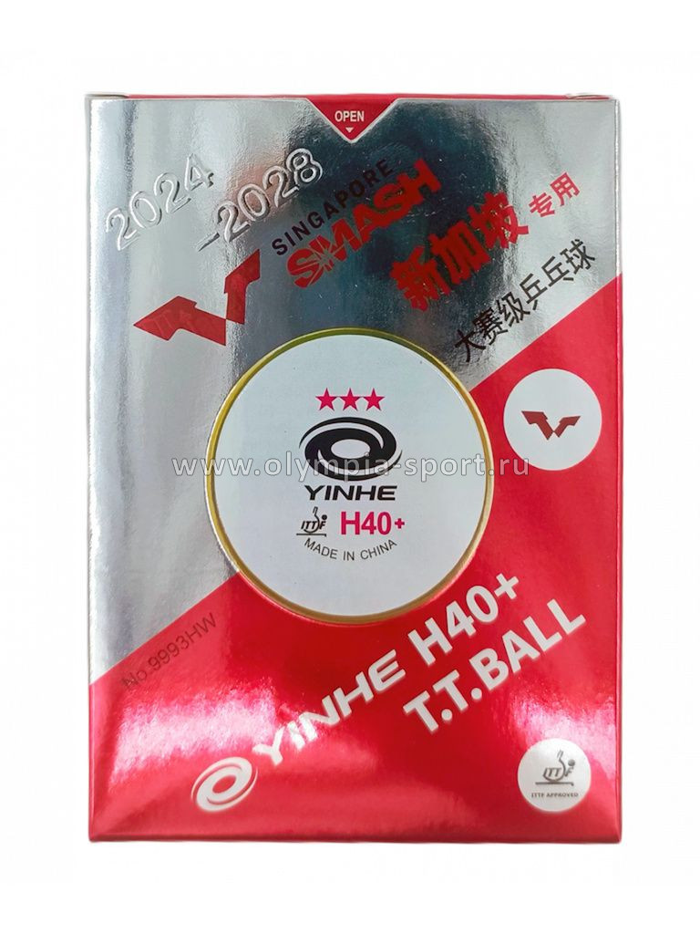 Yinhe 3*** H40+ - высококачественные мячи для настольного тенниса наивысшего уровня (три звезды), предназначенные как для соревнований самого различного уровня (включая наивысший уровень), так и для регулярных тренировок спортсменов, отдающих предпочтение качеству и долговечности. Мячи Yinhe 3*** H40+ одобрены к использованию Международной федерацией настольного тенниса (ITTF).